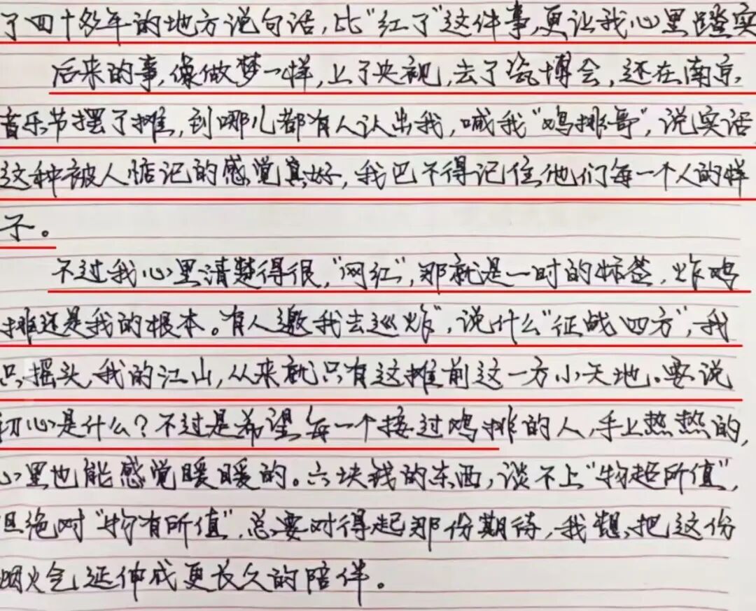 在这里,“鸡排哥”也用一篇作文——《敬不忘初心的自己》回顾了自己的走红经历。